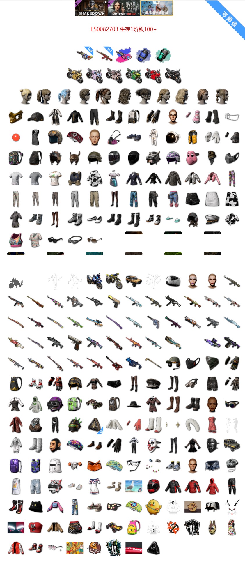 L50082703 爆裂AUG八级 AK一级 爆裂AUG异色 烟雾弹 杜卡迪 丸子头 双马尾 金面发光鼻子 生存1阶段100+